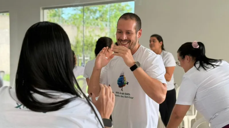 A programação teve início com a participação da equipe do Espaço de Musicoterapia, com os musicoterapeutas Erílio Júnior e Ilke Moreira, que conduziram um momento voltado à saúde emocional, cognitiva e social dos colaboradores por meio da música.