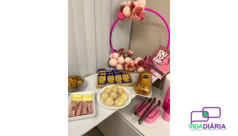 A tarde foi encerrada com um delicioso coffee, preparado com muito carinho, e uma decoração especial assinada pela parceira Angleice da Isis Fest e Lidiane Tavares com biscoitos, que adoçaram o momento com biscoitos personalizados em homenagem ao Outubro Rosa.